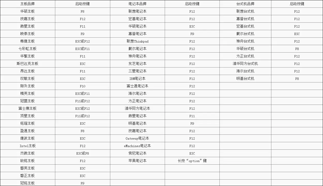 重启电脑后,在开机自检(POST)画面出现时,连续按下启动菜单热键进入PE。
